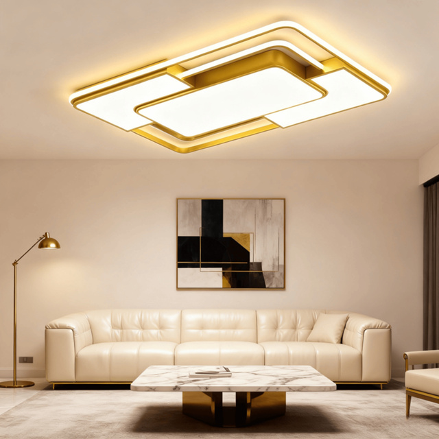 Luminária de LED 90CM*60CM de Sobrepor Quadrado Bivolt 3 Cores Com Luz Central Dupla Lustre de teto
