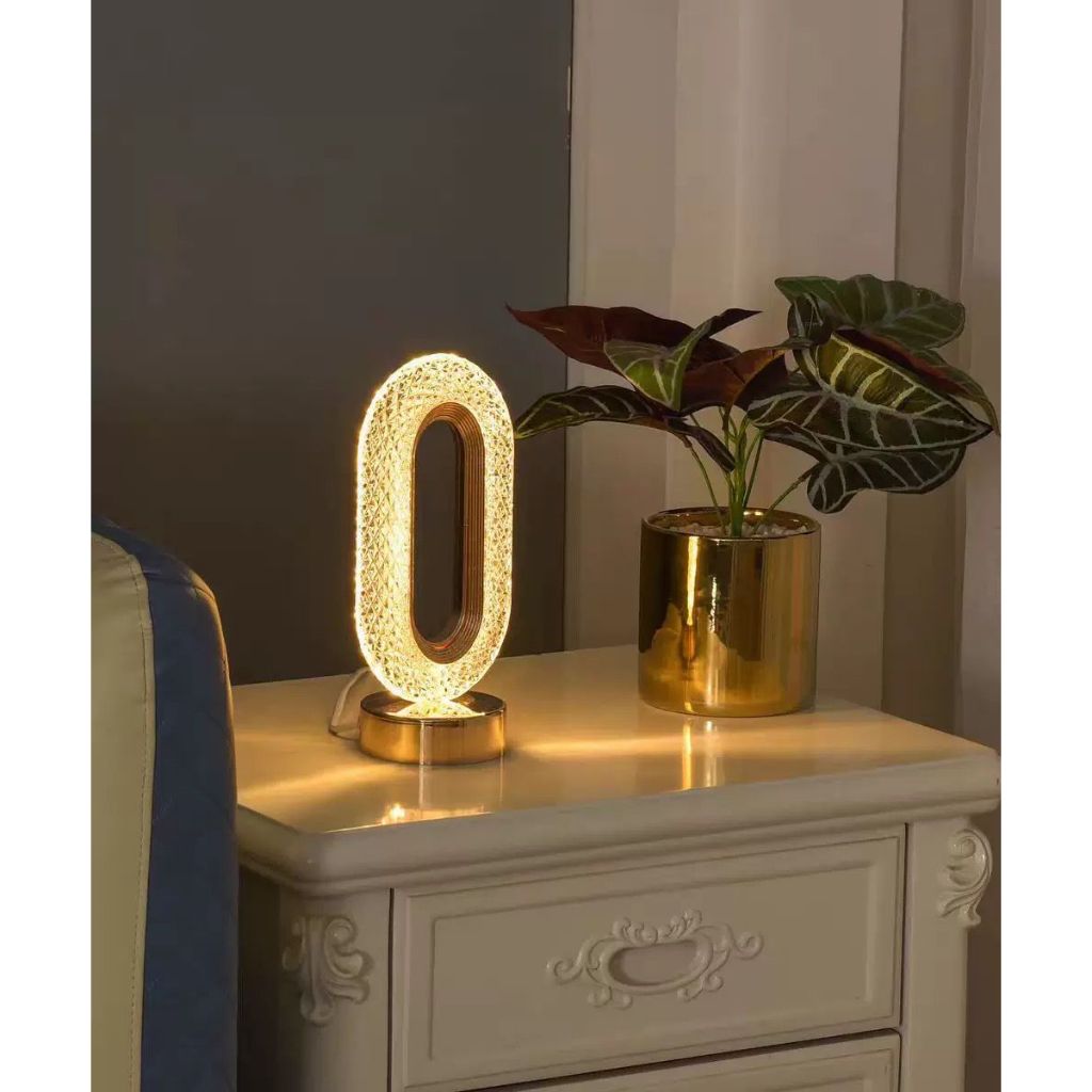 Luminária de Mesa Lâmpada Quarto Luxuosa Cristal Acrílico 3 Tons de Led