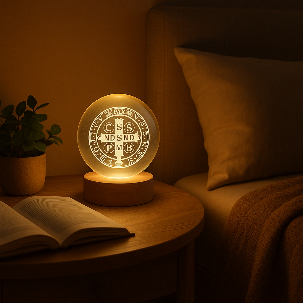 Luminária De Mesa Religiosa Com Medalha De SÃO BENTO Divino 3D Bola de Cristal para Quarto
