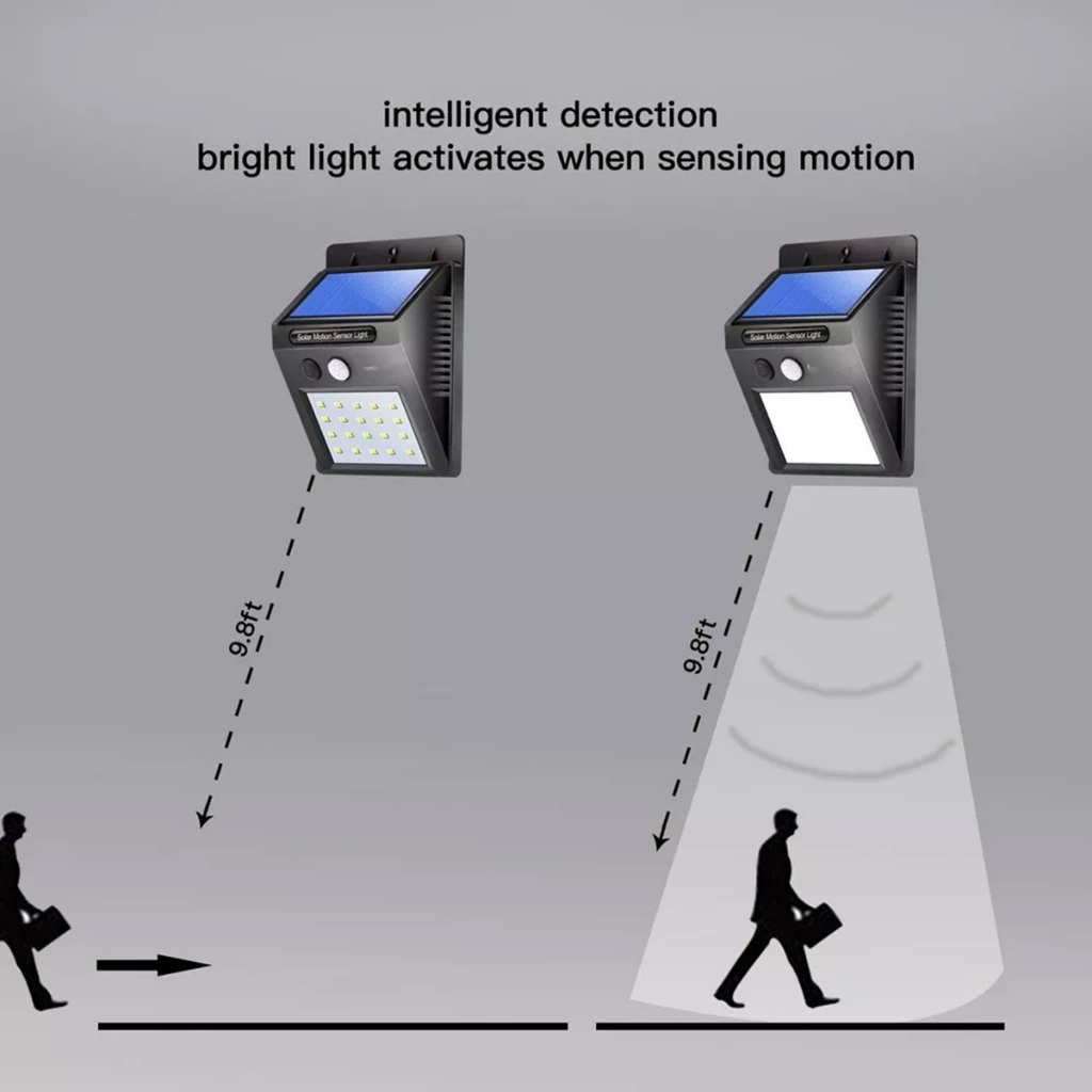 Luminária De Parede Energia Solar Com Sensor De Movimento Presença 20 Leds Bateria Lâmpada Luz À Prova D' Água Fotocélula