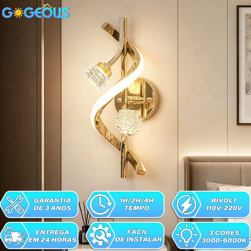 Luminária de Parede Moderna de Cristal 3 Cores Bivolt 110V-220V para Corredor Sala Quarto Escadaria