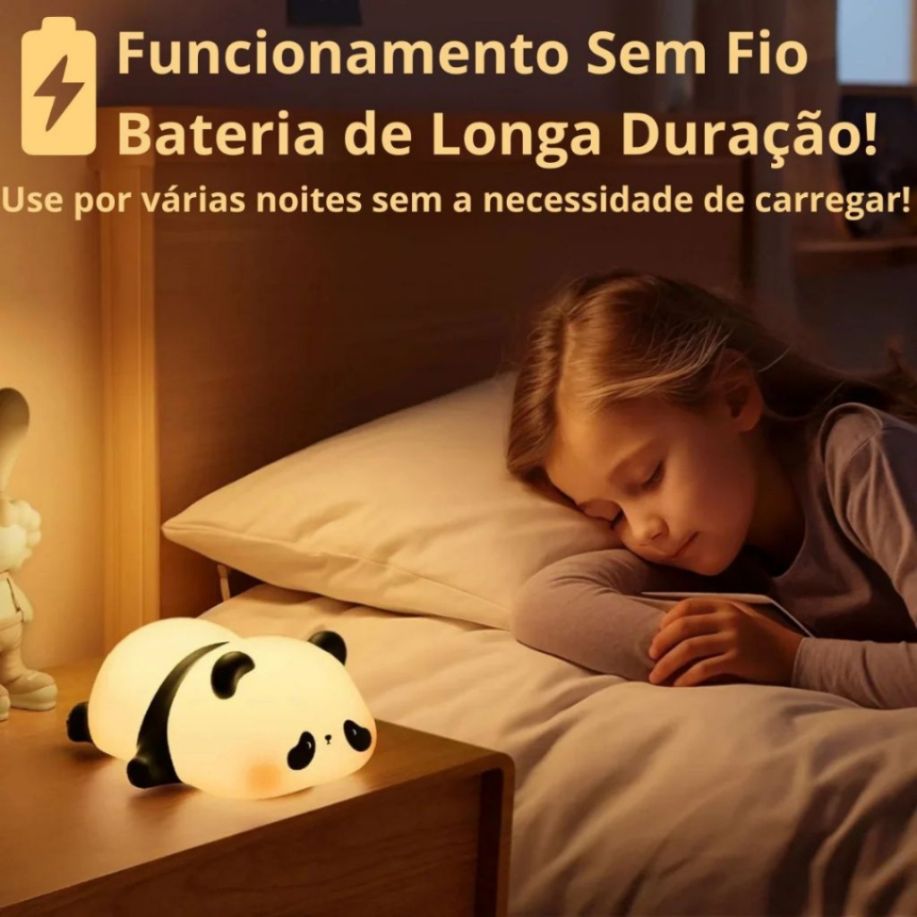 Nova Versão da Luminária mais querida do momento já chegou!!! O nosso novo modelo possui timer ajustável para desligar; Este novo modelo também possui 3 níveis de ajuste de luminosidade; Bateria de longa Duração; Funcionamento sem Fio; Acionamento por toque. Design Encantador e Atraente A Luminária de Panda com Controle por Toque é mais do que uma simples fonte de iluminação; é uma obra de arte que adiciona um toque de ternura e estilo a qualquer ambiente. Com um design meticulosamente trabalhado, ela captura a essência do panda de maneira fofa e realista. Suas linhas suaves e proporções harmoniosas fazem dela um elemento decorativo perfeito para quartos infantis, salas de estar, escritórios ou qualquer espaço que precise de um toque de charme e alegria. Tecnologia de Toque Inovadora Diferente das luminárias convencionais, esta luminária de panda utiliza uma tecnologia de controle por toque altamente sensível, permitindo que você ajuste a intensidade da luz com apenas um leve toque na cabeça do panda. O controle intuitivo oferece três níveis de brilho distintos: Luz Suave e Aconchegante: Ideal para momentos de relaxamento ou como luz noturna para crianças. Esta intensidade baixa proporciona uma iluminação quente e reconfortante que ajuda a acalmar e criar um ambiente tranquilo. Luz Intermediária: Perfeita para leitura ou atividades que requerem concentração, mas sem causar fadiga visual. Oferece um equilíbrio entre clareza e conforto. Luz Intensa: Para atividades que demandam uma iluminação mais forte, como trabalhos manuais, estudos detalhados ou tarefas que exigem maior atenção. Esta intensidade máxima garante que você tenha toda a luz necessária sem sombras indesejadas. Funcionalidade e Praticidade A Luminária de Panda é projetada com uma base sólida e estável que impede quedas acidentais, garantindo segurança, especialmente em ambientes com crianças. Feita com materiais de alta qualidade, ela é durável e resistente, garantindo uma longa vida útil. Além disso, a luminária é equipada com uma bateria recarregável via USB, proporcionando até 10 horas de uso contínuo com uma única carga. Isso elimina a necessidade de troca constante de baterias, tornando-a uma opção mais sustentável e conveniente. Criação de Ambientes Agradáveis Esta luminária não apenas ilumina, mas transforma o ambiente, criando uma atmosfera acolhedora e agradável. A luz ajustável permite que você personalize o ambiente de acordo com seu humor e necessidade, seja para relaxar, trabalhar ou simplesmente passar um tempo em um espaço aconchegante. Sua presença é reconfortante, tornando-a especialmente útil para acalmar crianças na hora de dormir ou proporcionar um ambiente de estudo ideal. O Presente Perfeito A Luminária de Panda é uma escolha fantástica para presentes, encantando tanto crianças quanto adultos. Sua combinação de um design adorável com funcionalidades práticas a torna um presente memorável para aniversários, celebrações especiais ou simplesmente para surpreender alguém querido. Sua versatilidade e beleza fazem dela um item que agrada a todos. Especificações Técnicas: Material: Plástico ABS de alta qualidade e silicone, proporcionando durabilidade e uma textura agradável ao toque. Fonte de Luz: LED de alta eficiência energética, com vida útil prolongada e baixa emissão de calor. Dimensões: 15 cm de altura x 11 cm de largura, tamanho ideal para qualquer ambiente. Alimentação: Bateria recarregável via USB (cabo incluído). Duração da Bateria: Até 10 horas de uso contínuo com uma única carga. Peso: Leve e portátil, facilitando a movimentação e posicionamento. Transforme a maneira como você ilumina e decora seu espaço com a Luminária de Panda com Controle por Toque. Sua combinação de design encantador, tecnologia avançada e funcionalidade prática faz dela um item indispensável para qualquer lar. Adquira a sua hoje mesmo e experimente a mágica que uma luminária de panda pode trazer para sua vida!