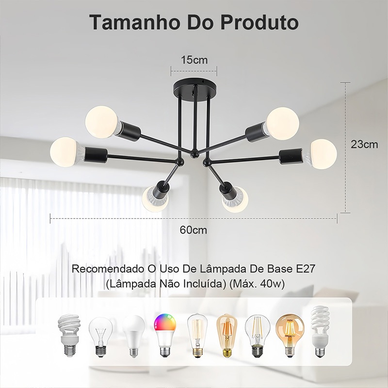 em vindo ao melhorescoisas A loja fica próxima a São Paulo, 24 horas por dia em dias úteis, e as prévias dos produtos chegam em 3 a 4 dias. 📢🔥🔥Sobre a cobertura anual do seguro: ❤Problemas do produto, antipatia pelas mercadorias recebidas, peças fora de estoque, aparência original do produto 📢🔥🔥 Dúvidas sobre o recebimento da mercadoria: 🚚(Verifique o produto quanto a vazamentos ou danos após recebê-lo) 👉Se o produto recebido estiver rachado ou danificado 👉Se o produto que você receber estiver faltando alguma peça. Por favor, recolha todos os itens que receber, tire fotos e envie-as ao representante de atendimento ao cliente informando quais peças estão faltando e as peças serão reenviadas para você. 👉A atendente está online 24 horas por dia e responderá às suas perguntas em tempo hábil Verifique o tamanho do modelo antes de comprar! ! ! Tipo de projeto: Lâmpada CEILING Duplo bifurcado moderno; Características: Arte decorativa / nostalgia / simplicidade; Tipo de suporte da lâmpada: E27; Material do corpo: ferro forjado; Processo: pintura de cozimento, polimento; Área: 15-25 metros quadrados; Lugares aplicáveis: Sala de estar, quarto e sala de jantar; O produto não inclui lâmpadas e precisa ser comprado separadamente. O pacote contém: Um conjunto de lustres (não contém lâmpadas)