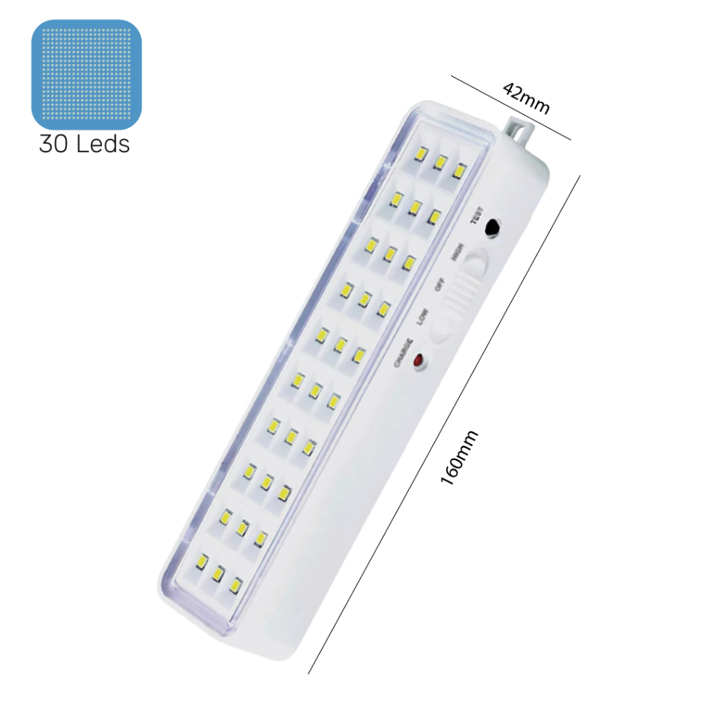 Luminária Emergência Lâmpada 30 Leds Recarregável Bivolt Luz Branca (Branco Frio 6,500K)