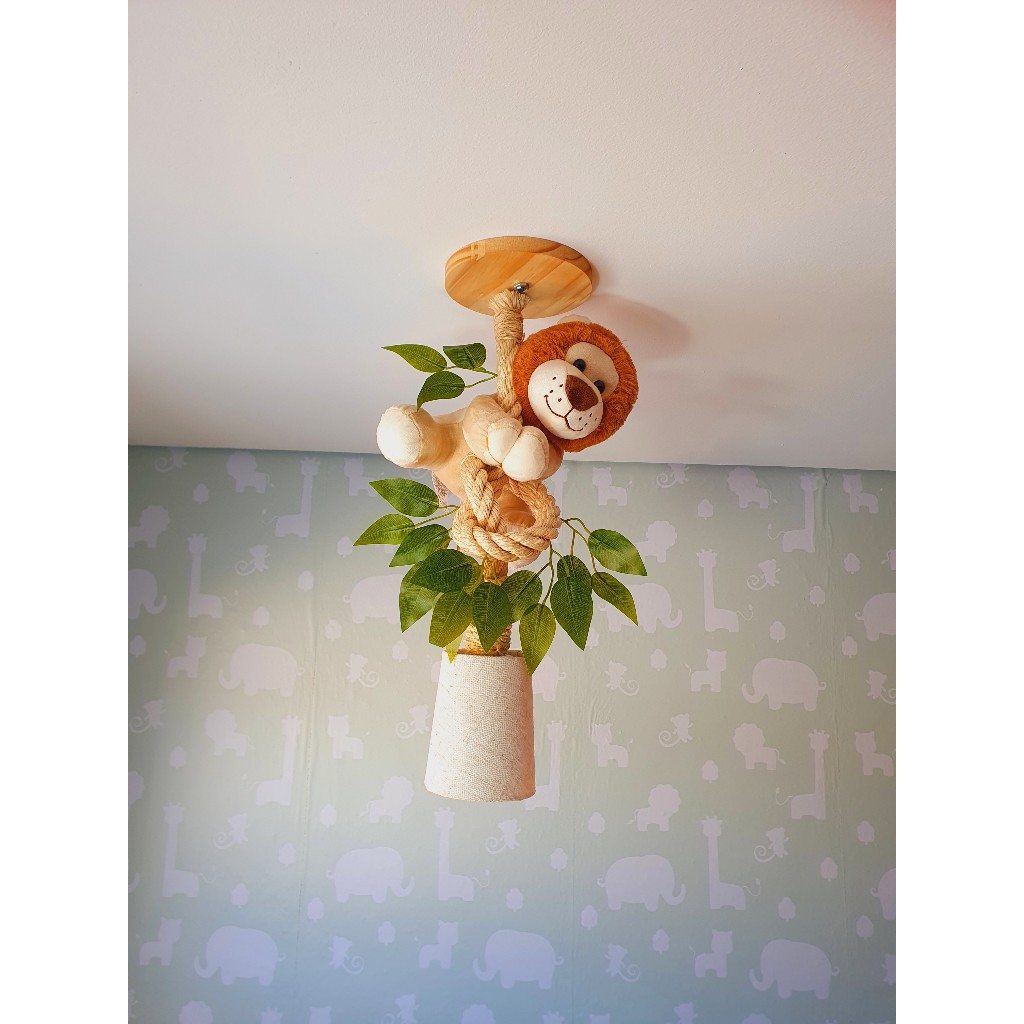 Luminária infantil quarto bebê safari COM CÚPULA TECIDO e leão