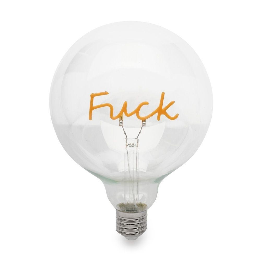 Que tal ligar o modo fun com a nossa Luminária Lâmpada de Filamento Fuck? Toda em vidro e contando com um filamento com a palavra "Fuck" escrita em seu interior, ela chegou para garantir muito mais estilo à sua decoração e uma dose extra de bom humor e irreverência ao seu dia a dia! Contém 1 lâmpada. Material: Vidro e componentes eletrônicos. Tamanho: 12,5 cm x 17,5 cm. Peso: 91,9 g. Base da lâmpada: E27. Tipo de luz: LED. Cor: Branco quente 2200K. Tensão: Bivolt. Potência: 2 W. Vida útil dos LEDs: 25.000 horas. Obs.: Não é possível substituir os LEDs do produto. Atenção: Evite tocar na lâmpada enquanto estiver acesa. Limpar somente com pano seco. Teme químicos e abrasivos. Validade indeterminada.