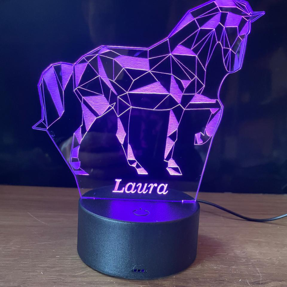 Luminária Led 3D 7 cores cavalo 2, Animais, opções: Nome gravado, Controle remoto