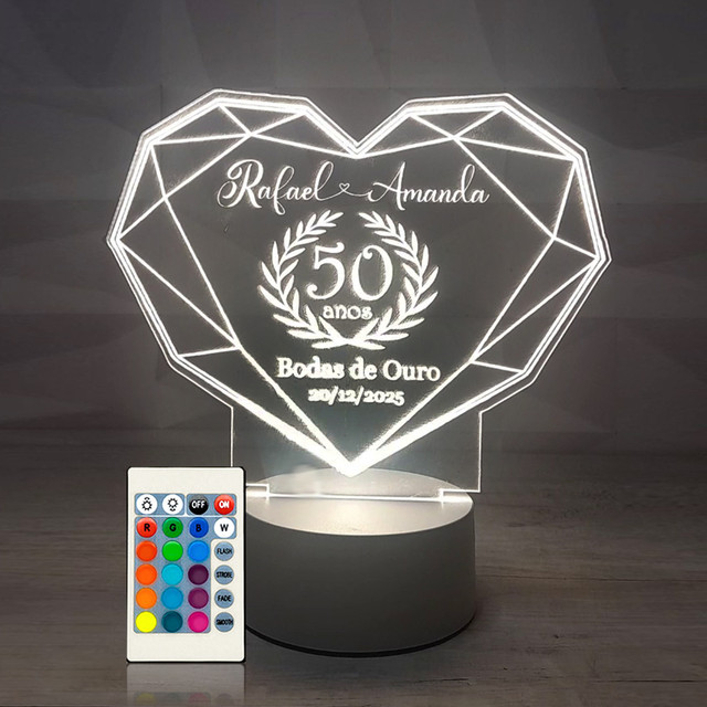 Luminária LED 3D Personalizada Presente Bodas de Ouro Prata