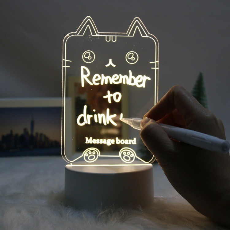 Luminaria Led Escrever De Caneta Lousa Quadro Mesa Anotações Gato