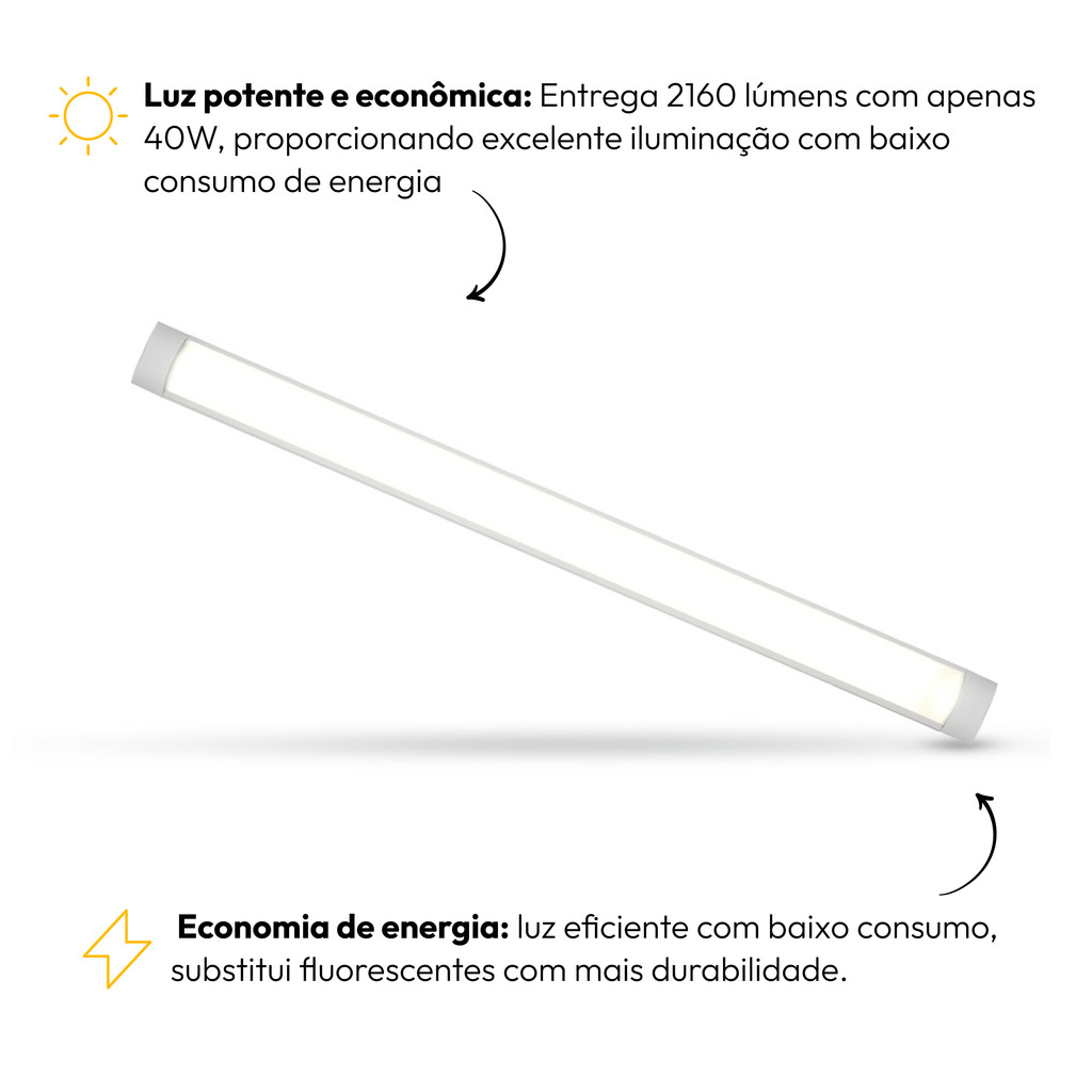 Luminaria Led Linear 40w 6500K Branco Frio 110v/220v Ip20 Branco Cod: ALUT000402 Alut By Avant