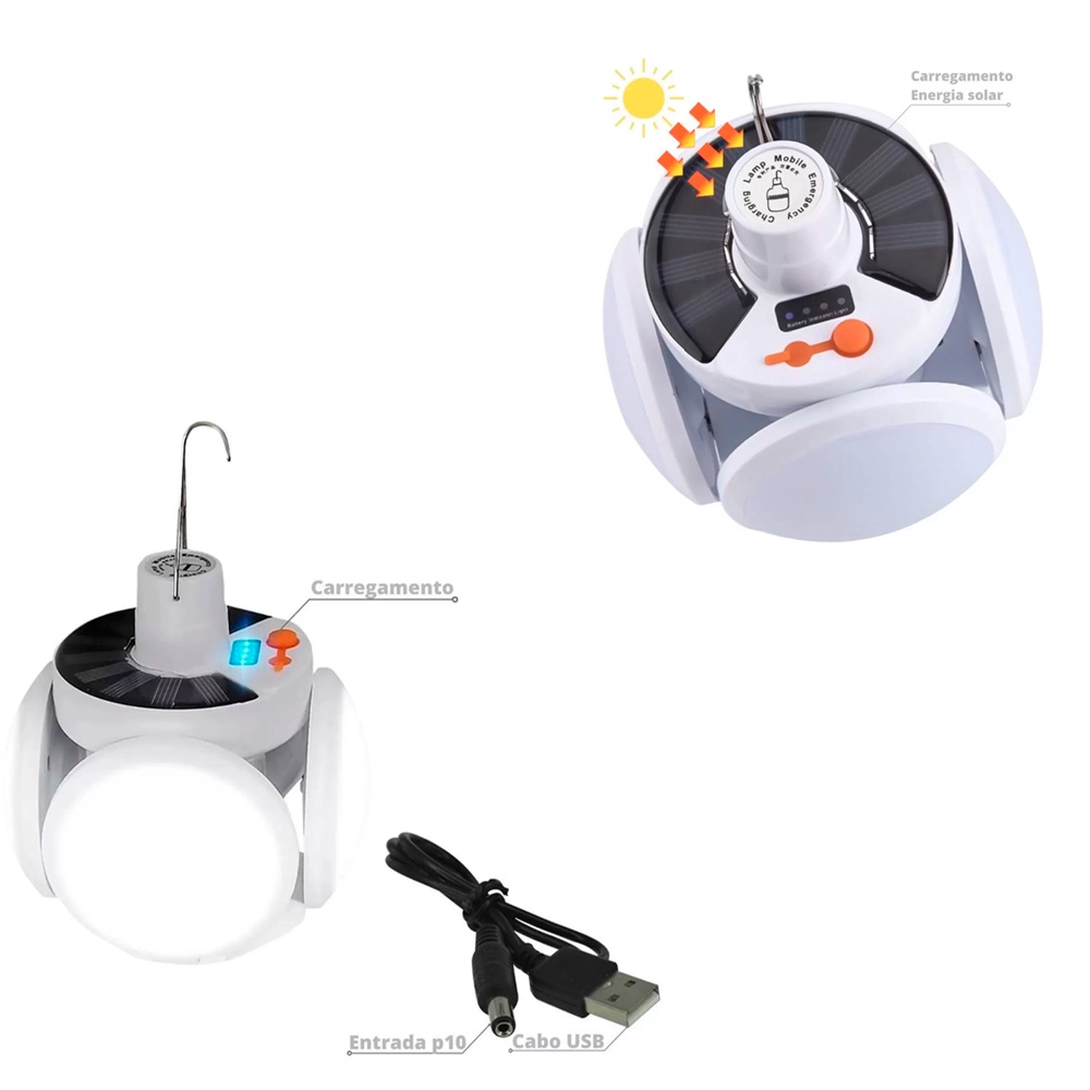 Luminária Led Para Atividades Ao Ar Livre Ajustável Tradicional Carregamento USB Solar Recarregável