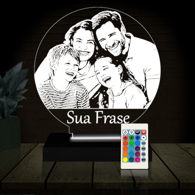 PRESENTE CRIATIVO E DE ÓTIMA QUALIDADE - Após a compra, enviar a imagem que deseja no chat do pedido. - Fazemos sua logo, seu personagem ou qualquer foto que enviar. - Quanto melhor a qualidade da foto e iluminação, melhor o resultado. - Embalagem 3D Fantasy pronta para presentear - Postagem RÁPIDA em até 24h após a confirmação de compra - Baixo consumo de energia - Loja de fábrica - Amperagem usada proporciona uma iluminação de mais qualidade - Garantia de Fábrica de 3 meses Disponível em: 16 cores Tomada: - Controle Remoto RGB de 16 cores - Base retangular MDF Preto - Fonte Bivolt - Acrílico de 4mm com 20 de altura, com a largura proporcional ao desenho 1 Cor Tomada: - Disponível nas cores de LED Branco, Azul, Vermelho, Verde, Amarelo e Rosa - Base retangular MDF Preto - Fonte Bivolt - Acrílico de 4mm com 20 de altura, com a largura proporcional ao desenho 16 Cores USB e Pilha: - Controle Remoto RGB de 16 cores - Base Branca Redonda - Cabo USB (Suporte Bivolt 110/220) - Funciona a pilha (3 Unidades AA) - Acrílico de 3mm com 20 de altura, com a largura proporcional ao desenho Branco USB: - Disponível na cor de LED Branco - Base redonda Branca - Cabo USB Bivolt (Suporte 110/220v) - Acrílico de 3mm com 20 de altura, com a largura proporcional ao desenho
