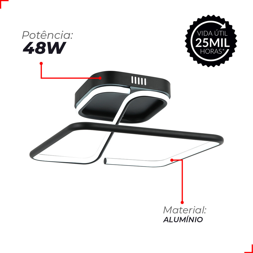 Luminaria led Plafon Cecilia 48w 3000k Branco Quente 110v/220v Bivolt Preto Cod: 589128076 Avant
