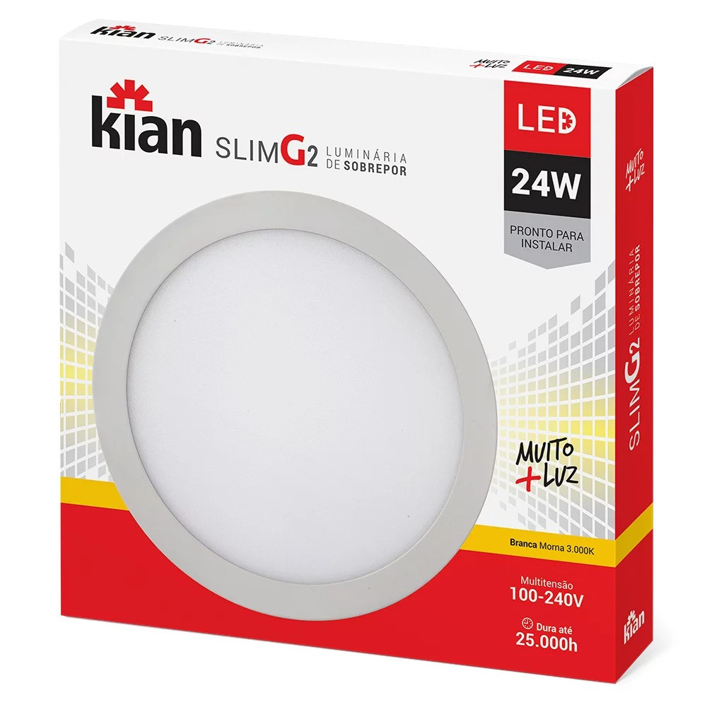 Luminaria Led Sobrepor Redonda Slim 24W 3000K Kian