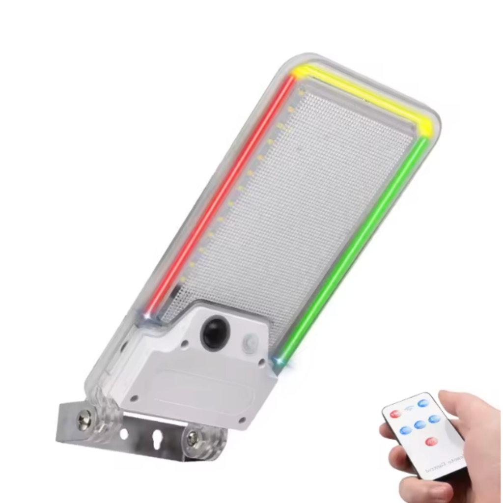 Luminária Led Solar Refletore Poste Rua Sensor Controle Com 3 Funções RGB