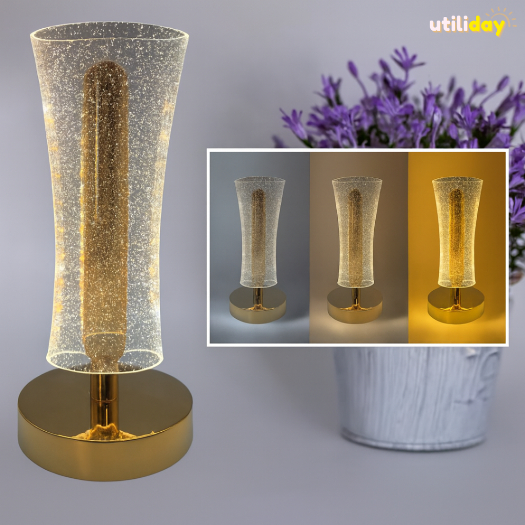 Luminária LED Touch Moderno 3 Luzes Cores Acrílico Sala Moderno Quarto USB Dimerizável Recarregável