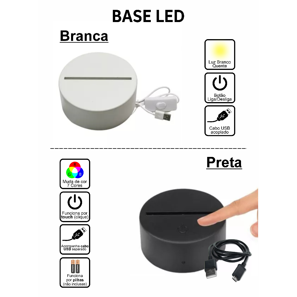 *IMPORTANTE:* Procedimento após a compra: - Cliente deve entrar informar nas observações do pedido ou entrar contato conosco pelo chat e enviar o nome para personalização; Te retornaremos para confirmação assim que possível. Contamos com a colaboração dos clientes de fazer o envio de imediato após a compra, pois nosso prazo de produção é curto.O cliente está de acordo que caso não enviado até o fim do prazo, seremos obrigados a enviar um produto sem personalização com caneta de giz especial (para o cliente personalizar por conta própria), para seguir as normas e reputação da plataforma. Saiba o que está comprando: - Luminária com base LED do modelo escolhido Base Branca: Possui somente um fio USB acoplado à base, não possui compartimento para pilhas. Se conecta em carregadores (não incluso) ou entradas para USB Base Preta: Acompanha um cabo USB separado da base LED, e possui compartimento para pilhas 3AA. - Luminária feita em acrílico 3mm gravado e cortado à laser Acompanha: - 1x base ABS; - 1x placa personalizada de acrílico para colocar na base; - 1x cabo USB Medida do acrílico: aproximadamente 17x17cm Feita com materiais de alta qualidade, essa peça exclusiva é perfeita para decorar qualquer ambiente **Aviso Importante sobre Uso Indevido de Imagens** Todas as imagens contidas em nossos anúncios são de propriedade exclusiva da nossa loja e protegidas pela legislação de direitos autorais. O uso, reprodução, cópia ou compartilhamento das fotos sem autorização expressa é estritamente proibido