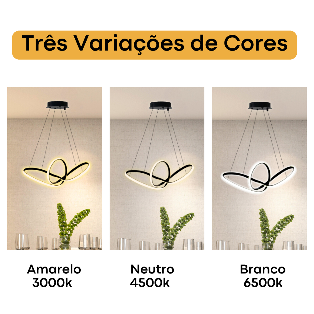 Luminaria Lustre Pendente Led De Teto Sala De Jantar Moderna Infinito 45w 3 Em 1 Bivolt
