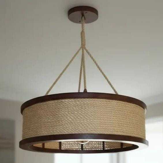 Luminária Lustre Pendente Rústico Madeira Corda Sisal 30cm diâmetro