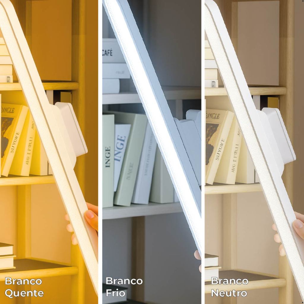 Luminária Magnética Slim Inteligente Led Recarregável 3 Cores Ajuste 90° USB Bivolt