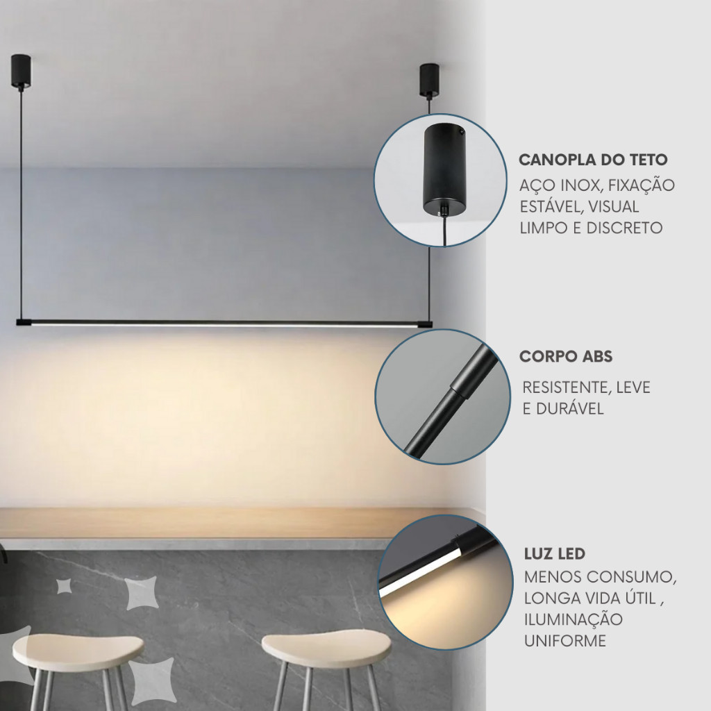 Luminária Moderna Led Linear Preta Bivolt 3em1