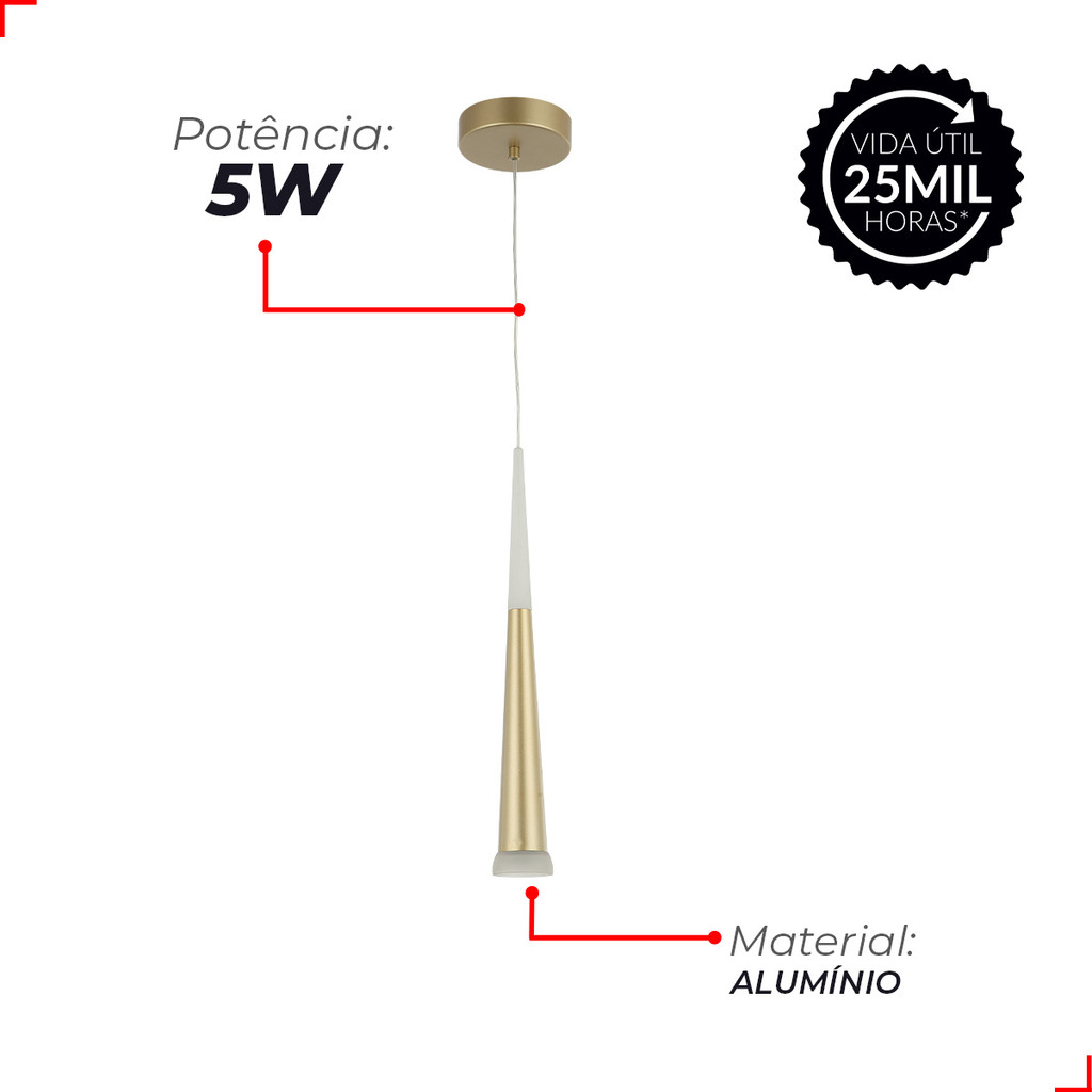 Luminaria Pendente Led Dani Aluminio 5W 3000k a 6500k Avant