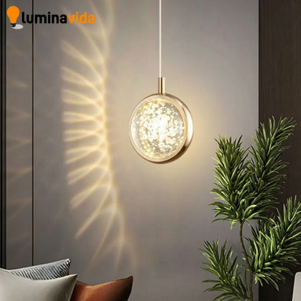 Luminária Pendente Saturno Cristal Bolhas Redondo Gold Preto 7W Bivolt 3 Cores 110V-220V Cinderella