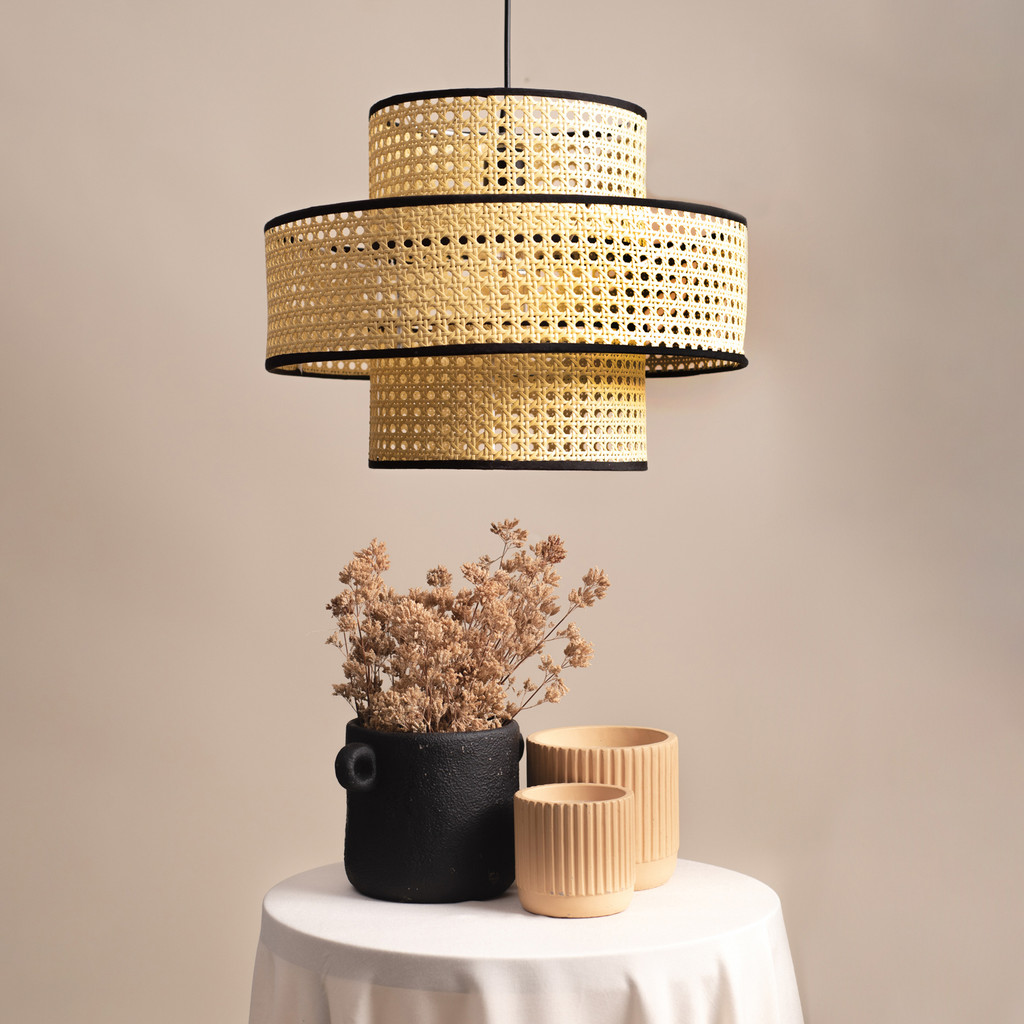 luminária pendente tela 40cm degradê palha indiana rattan moderna - Oikos