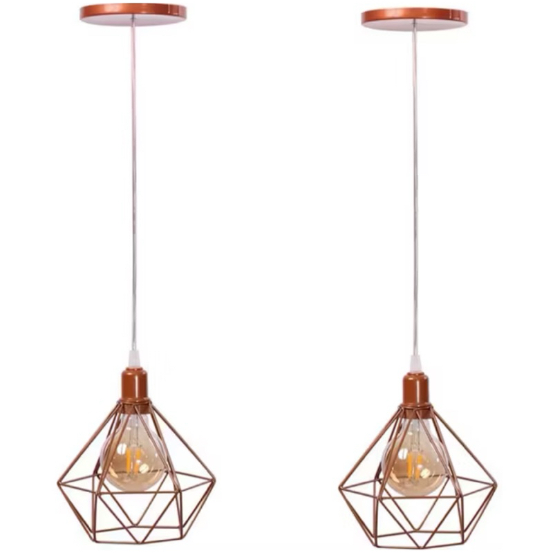 luminária pendente teto diamante aramado kit com 2 .decoração retro