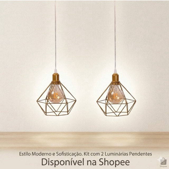 | luminária pendente teto diamante aramado kit com 2 .decoração retro este produto | R$ 44,00 | 12% | 5.0/5 | — |