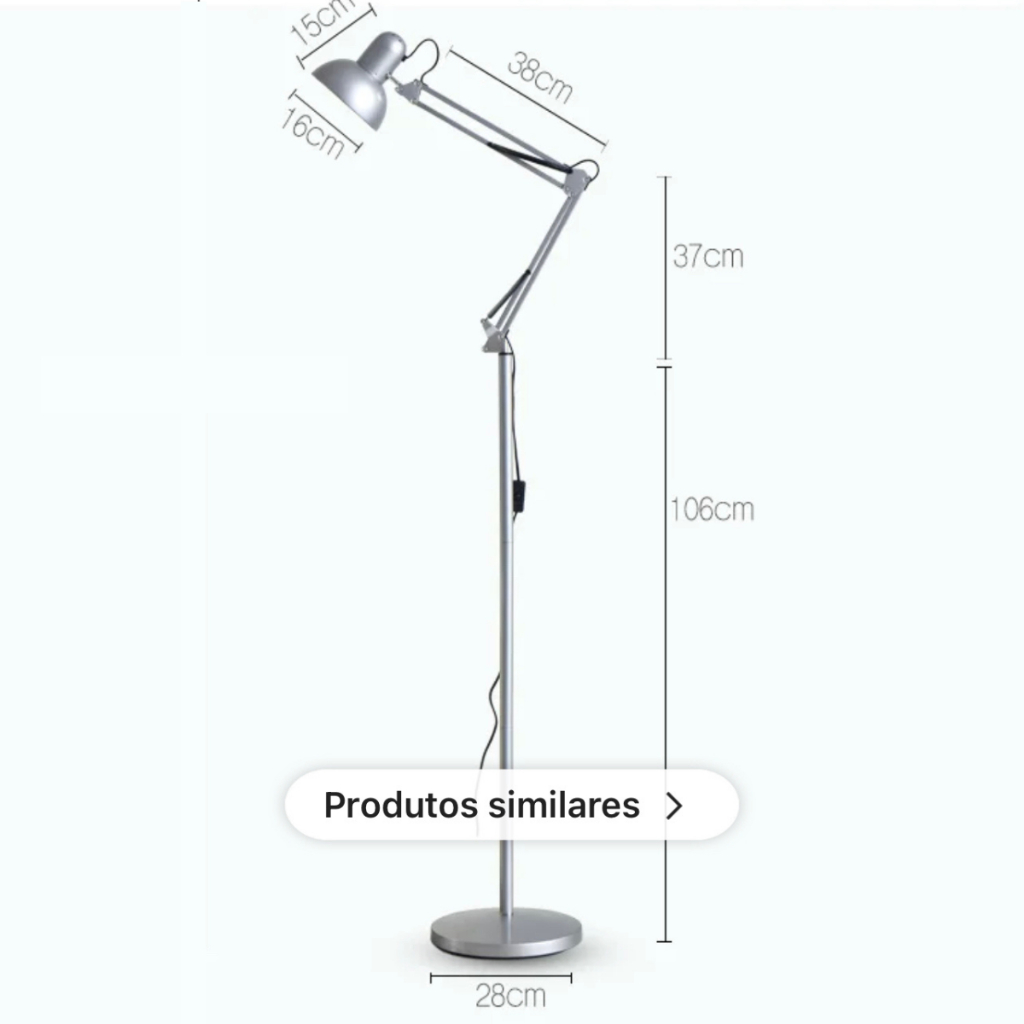 Você está em busca da combinação perfeita entre funcionalidade e estilo para iluminar o seu ambiente? Apresentamos a você a Luminária Pixar Articulada, uma peça única que traz todo o charme do estilo vintage para o seu espaço. Com seus impressionantes 1.9 metros de altura, esta luminária se destaca onde quer que seja colocada, adicionando um toque de elegância e sofisticação. Sua estrutura articulada permite ajustar a direção da luz conforme suas necessidades, proporcionando uma iluminação personalizada para suas atividades. Além de sua beleza estética, a Luminária Pixar Articulada é também uma escolha inteligente para o seu ambiente de trabalho, estudo ou leitura. Seu design inspirado nas clássicas luminárias de estúdio de cinema oferece uma iluminação direta e concentrada, ideal para momentos de foco e concentração. Seja na sala de estar, no escritório, no quarto ou em qualquer outro espaço, esta luminária se adapta perfeitamente ao seu estilo de decoração, adicionando um toque de nostalgia e personalidade. Não deixe sua decoração no escuro! Ilumine seu espaço com estilo e funcionalidade com a Luminária Pixar Articulada. Adquira já a sua e transforme seu ambiente! CARACTERISTICAS: - Base: 28cm - Soquete: E27 (Qualquer lâmpada comum) - Material: Metal - Potência: 60 watts - Voltagem: Bivolt ITENS INCLUSOS: - 01 Cabeça da luminária - 01 Barra Articulável - 01 Base de Chão - 04 Barras de metal