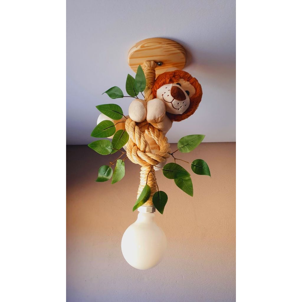SELECIONE A OPÇÃO DE PELÚCIA NAS VARIAÇÕES DO ANÚNCIO! Pendente luminária de corda medindo aproximadamente 50 cm com o nó já efetuado; Base em madeira redonda envernizada medindo 15 cm para parafusar no teto. ( Acompanha os acessórios para instalação ) . A base de madeira envernizada proporciona uma beleza ainda maior a luminária, pois a madeira com a corda produz um aspecto rústico, diferenciado e aconchegante. PELÚCIAS ANTIALÉRGICAS DE EXCELENTE QUALIDADE. Medindo aproximadamente 25 cm; Soquetes padrão E27. Lâmpada não inclusas. Luminária bivolt; Luminária já vai pronta com o nó efetuado, é somente pendurar a pelúcia na melhor posição que desejar e fixar no teto. Instalação fácil e rápida. Qualquer dúvida estamos a disposição para atendê-los!