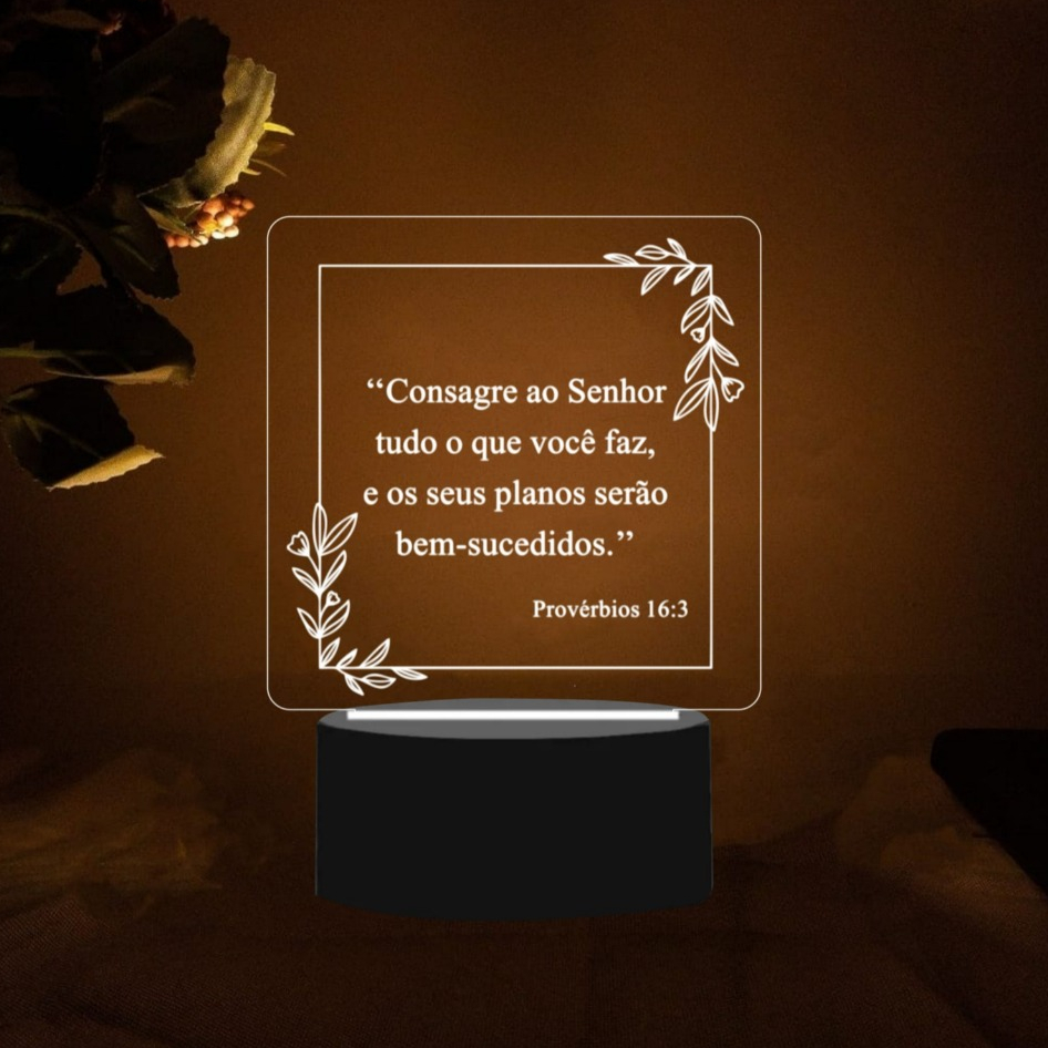 LUMINÁRIA RELIGIOSA PERSONALIZADO COM VERSÍCULO / SALMO - ABAJUR LED