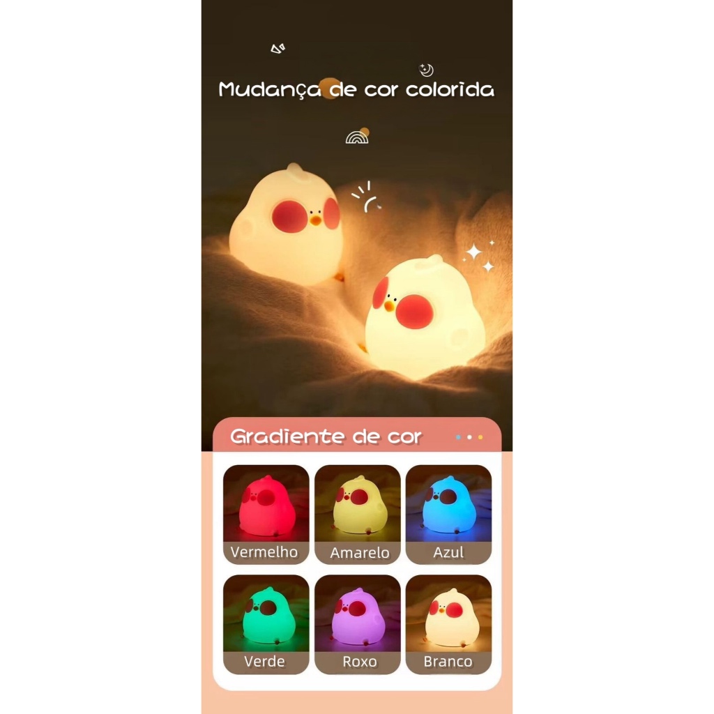 Luminária Silicone Touch Abajur Led Recarregavel Pintinho Luz Noturna Rgb Com Controle Para Presente De Aniversário