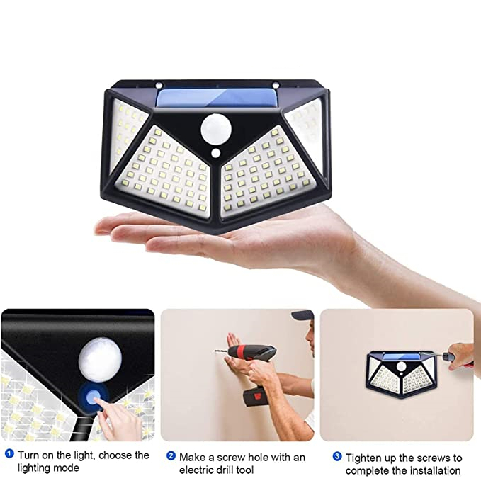 LumináRia Solar 4/100 Led Com Sensor Jardim Prova D'água