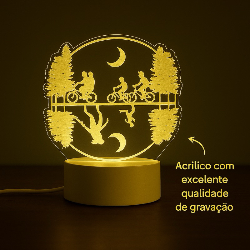 🧠 Para quem ama mistérios, luzes e o mundo invertido! Inspirada na série Stranger Things, essa luminária traz a essência dos dois mundos: o real e o invertido — com os personagens em bicicleta e o reflexo sinistro logo abaixo. 💡 Um item decorativo incrível para: Quartos de fãs da série Escritórios com estilo geek Salas de jogos e coleções Presente criativo para quem ama Stranger Things 🎁 Perfeita para: Presentear fãs Aniversários temáticos Decoração de Halloween ou eventos geeks Criar um ambiente único com identidade visual marcante 📦 Detalhes: Acrílico com corte a laser de alta precisão Base LED com luz suave Alimentação via cabo USB (incluso) 🛒 Adicione um toque de mistério à sua decoração com essa luminária épica!