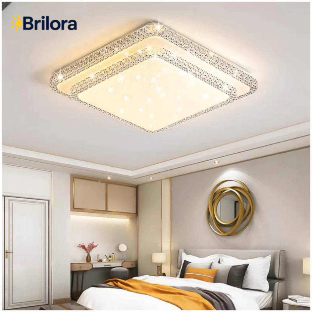 Luminária Teto Plafon Led Sobrepor Efeito Cristal Céu Estrelado Brilhante 3 Cor Em 1 Borda Infinita