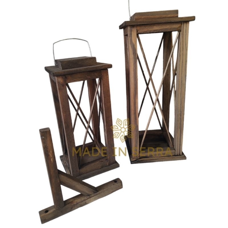 Luminárias Marroquinas em Madeira Rústica 32 e 42 cm | Par Decorativo com Detalhe em X