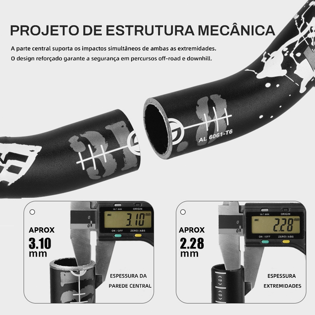 TÍTULO SUGERIDO GUIDÃO LUNJE MTB SPEED 780MM ALUMÍNIO 6061-T6 35MM RISE 31,8MM PRETO DESCRIÇÃO COMPLETA OTIMIZADA Desempenho máximo! Guiador profissional Lunjie, fabricado em alumínio leve e resistente. Projetado para ciclistas exigentes que buscam controle total, conforto ergonômico e resposta rápida em trilhas e estradas. Ideal para MTB, Speed e BMX! PRINCIPAIS BENEFÍCIOS Design ergonômico: Postura mais natural e confortável, reduzindo o cansaço em percursos longos. Maior estabilidade: Largura de 780mm para maior controle em manobras técnicas e curvas. Compatibilidade universal: Diâmetro 31,8mm, compatível com a maioria dos punhos e acessórios. Alta resistência: Material 6061-T6 com tratamento térmico, suportando impactos e vibrações. Estrutura monobloco: Sem soldas, maior durabilidade e segurança. Peso reduzido: Apenas 405g, auxiliando na aceleração e desempenho. ESPECIFICAÇÕES TÉCNICAS Marca: Lunje Material: Alumínio 6061-T6 Largura: 780 mm Diâmetro: 31,8 mm Rise (elevação): 35 mm Peso: 405g (±5g) Cor: Preto Estrutura: Monobloco + tratamento T6 COMPATIBILIDADE Bicicleta Mountain Bike (MTB) Bicicleta Speed / Estrada Bicicleta BMX INDICADO PARA Ciclistas de MTB (Enduro, Descida, XC) Ciclistas de velocidade Ciclistas BMX Quem busca upgrade em bicicletas de entrada e intermediárias RECOMENDAÇÕES DE USO Instalação recomendada por profissional. Não utilizar sobrecargas excessivas. Verificar os parafusos antes de cada uso. O QUE VOCÊ RECEBE 1x Guiador Lunje XL028 780mm Adquira já e melhore o controle, conforto e desempenho da sua bicicleta!