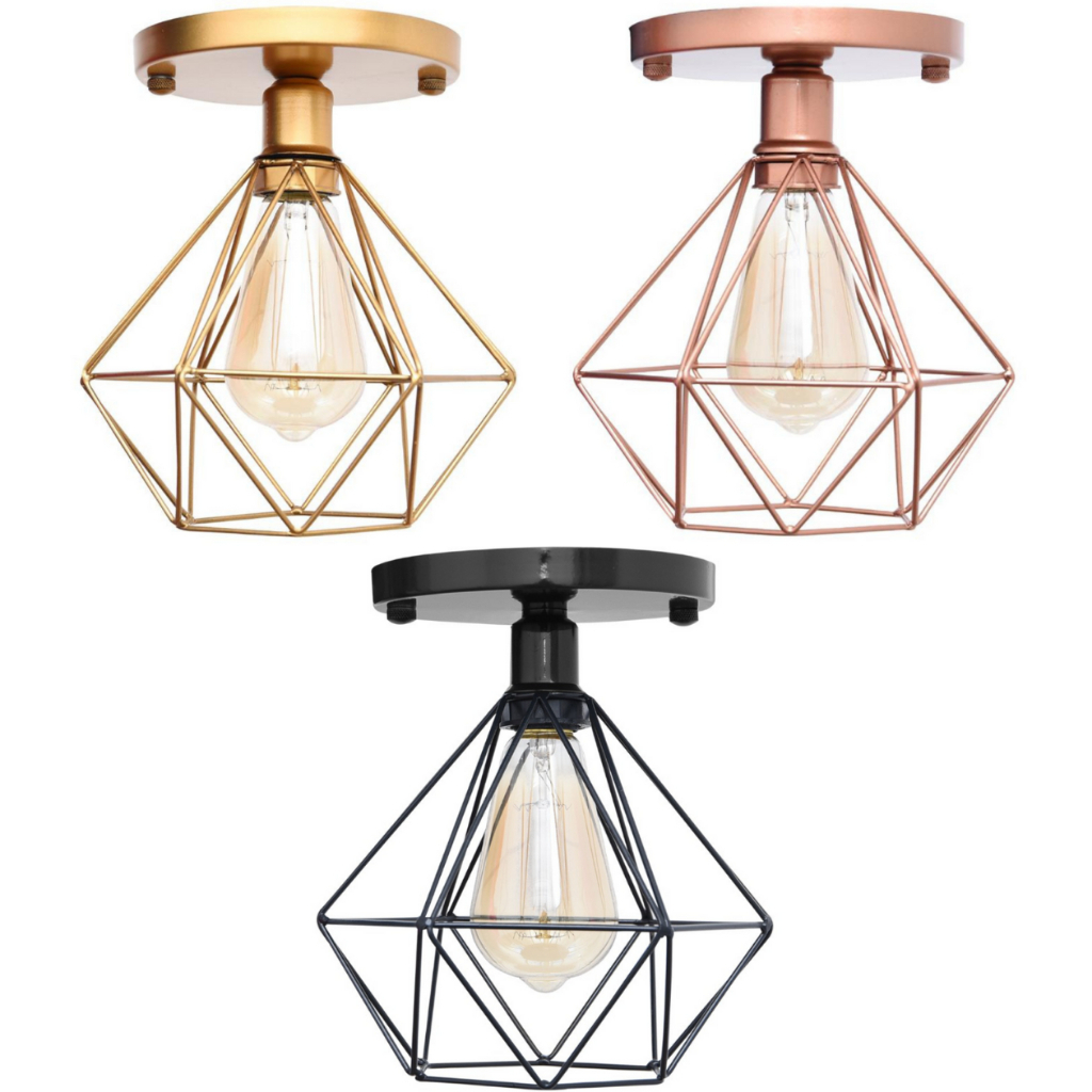 Lustre De Teto Industrial Plafon Retrô Aramado Diamante
