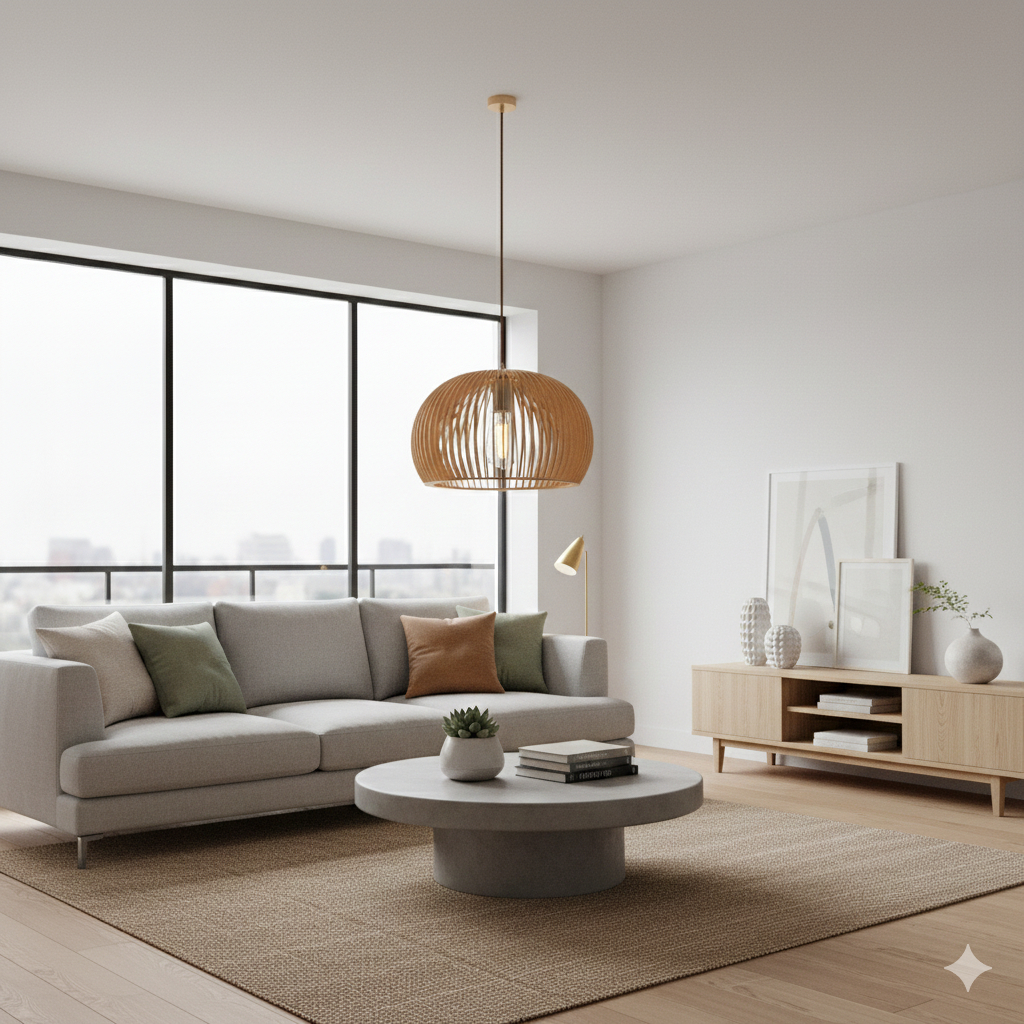 Lustre Luminária Teto Grande Pendente Bola de Madeira Decoração Sala de Jantar Cozinha Quarto