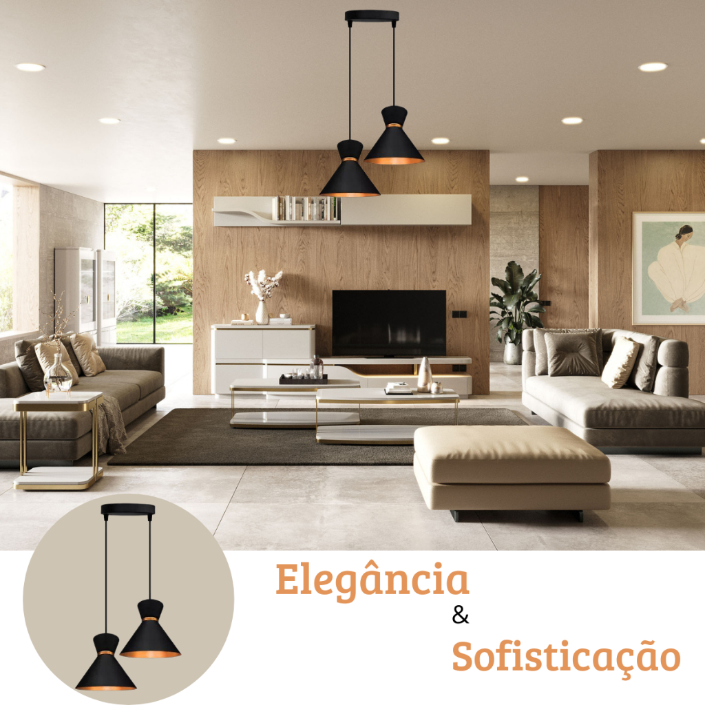 Lustre Pendente Luxo Rainha Preto c/ Cobre duplo Balcão jantar sala cozinha