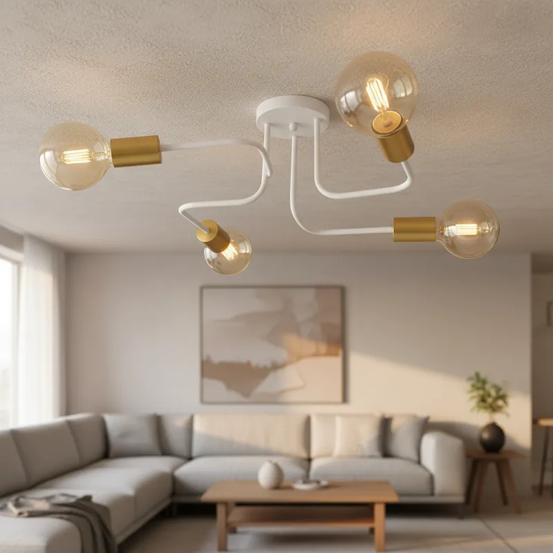 💡 Plafon Sputnik – Modernidade e Sofisticação em Cada Detalhe! Transforme seu ambiente com um toque contemporâneo e elegante! Este plafon é ideal para criar uma atmosfera 🔥 aconchegante e cheia de estilo — seja com lâmpadas decorativas ou convencionais. ✨ Destaques do Produto: 🧱 Material: Alumínio com pintura eletrostática de alta durabilidade ⚙️ Soquetes: 4 bocais padrão E27 ⚡ Potência máxima: 60W por bocal | Bivolt 📏 Medidas: 78 cm (largura) x 11 cm (altura) 🟠 Canopla: 12 cm de diâmetro 🎨 Cores disponíveis: ⚫ Preto | ⚪ Branco | 🟠 Rose Gold | 🟡 Dourado 💡 Sugestão de lâmpadas: Use com lâmpadas LED de filamento âmbar (modelos ST64 ou G95) para um efeito visual incrível! 🚫 Lâmpadas não inclusas ⚠️ Importante: A instalação deve ser feita por um profissional da área elétrica.