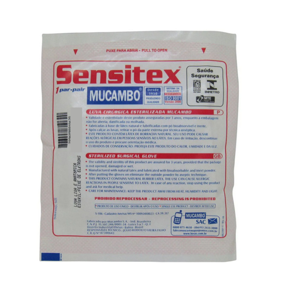 A Cirúrgica e Dental Pirassununga é referência em saúde e dedicada ao bem-estar dos nossos clientes. Há mais de 30 anos, somos uma empresa que atua, com excelência, na venda de produtos Médico Hospitalares. Informações do produto: Luva Cirúrgica de Látex Natural Estéril Sensitex - Mucambo® **Kit com 10 pares** Cada embalagem contém 1 par. É a melhor opção para quem procura a combinação ideal entre a SENSIBILIDADE TÁTIL, PROTEÇÃO, com garantia de qualidade Mucambo. Espessura Média: 0,21 mm Comprimento Médio: 280 mm Lubrificante: Pó Bioabsorvível Esterilização: Raio Gama Tamanhos: 6,5 a 8,5 Guia de Tamanho: Tamanho 6,5 (P) para mãos com palmas entre 7,5 e 8,5 cm Tamanho 7 ou 7,5 (M) para mãos com palmas entre 8,5 e 9,5 cm. Tamanho 8 (G): para mãos com palmas entre 9,5 e 10,5 cm. Tamanho 8,5 (EG): para mãos com palmas entre 10,5 e 11,5 cm. *Se a sua medida ficar entre dois tamanhos, escolha o menor, pois as luvas descartáveis tendem a aderir melhor às mãos quando estão mais justas. Registro M.S.: 10092410023 CA 39.317 ENTREGA: - Enviamos o seu pedidos em até 24 HORAS. - NOTA FISCAL: Emitimos nota fiscal em todas nossas vendas. - FRETE GRÁTIS: Este produto pode ter frete grátis, consulte as condições. *****ATENÇÃO: (NÃO ACEITAMOS DEVOLUÇÃO DE PRODUTO COM EMBALAGEM VIOLADA) **Trabalhamos com diversos tipos de produtos e alguns são estéreis e possuem lacre de proteção. Caso o lacre for aberto não será aceito em nenhuma hipótese a devolução. Perguntas Frequentes: 1) O produto é novo? R: Só trabalhamos com produtos novos, todas as vendas acompanham nota fiscal, produtos com garantia e procedência, fabricação e validade atuais. 2) O produto é a pronta entrega? R: Todos nossos produtos tem estoque para envio imediato. 3) Em quanto tempo o pedido é entregue? R: Em até 24 horas da confirmação de pagamento já enviaremos seu produto, o prazo para entrega é o mesmo informado no anúncio. - Caso você tenha mais alguma dúvida utilize o formulário de Perguntas e Respostas desta página. Será um prazer responder, conte conosco!
