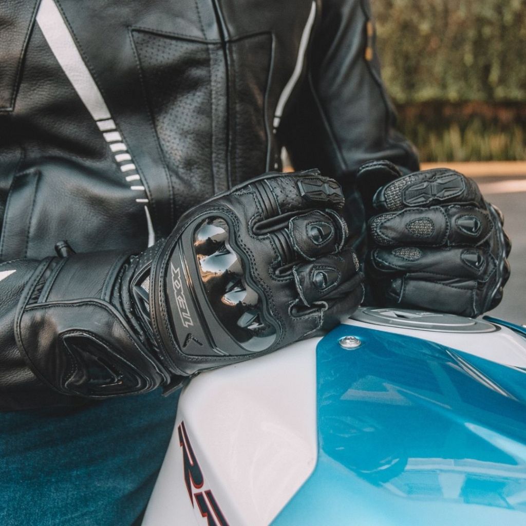 SOMOS A HOGGY STORE MOTOS - REVENDA TEXX E HJC OFICIAL _______________________________________________________ Luva de Couro Motociclista Texx GP Race LUVA GP RACE Longas e com proteção Evolution dorsal, as luvas TEXX GP Race oferecem segurança, conforto e versatilidade. Tudo o que os motociclistas procuram em uma luva esportiva com estilo. DESCRIÇÃO DO PRODUTO • Luva em couro de alta resistência; • Protetor superior em PU e com ventilação; • Protetor dedos de Kevlar nos dedos; • Finger Union - União dedo anelar para melhor pilotagem e segurança; • Protetor no punho em poliuretano; • Acompanha gancho para unir as luvas evitando a perda; • Couro perfurado para melhor ventilação; • Fechamento em velcro duplo; • Partes elásticas nos dedos para melhor movimentação; • Costuras duplas na palma da mão; • Reforço na palma em EVA e Kevlar; • Palma da mão com material que melhora o grip na manopla; • Dedo indicador com tecido tecnologia touch. Use o celular sem retirar as luvas; • Forro em tecido antialérgico; • Sistema de ventilação AIRTEXX na parte frontal da luva;