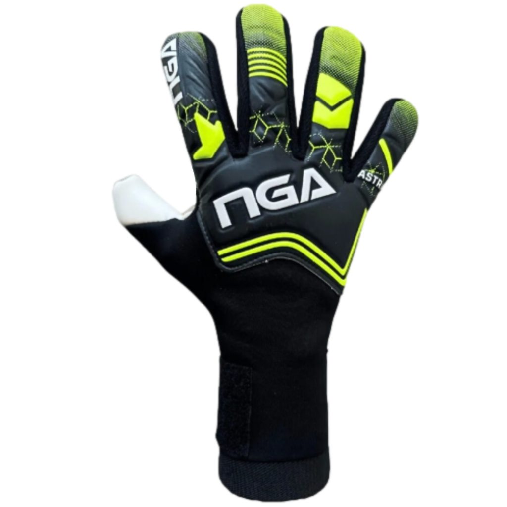 Luva de Goleiro NGA Soccer Astra Seja a estrela do jogo com a NGA SOCCER ASTRA, a luva desenvolvida para oferecer excelente aderência, conforto e durabilidade. Palma em látex natural Contact+ 3,5 mm + 3 mm de espuma – Grip profissional com amortecimento extra. Dorso em látex soft + Airprene – Resistência, leveza e ventilação. Corte Negativo + V-Notch – Ajuste anatômico e costura reforçada, sem rompimentos. Cinta Elástica Removível – Estabilidade e firmeza no fechamento, do seu jeito.