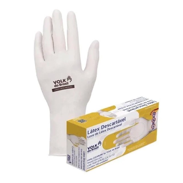 Luva de latex descartável P com 100 unidades - Volk Luva de segurança confeccionada em borracha natural, com pó bioadsorvível, ambidestra e superfície lisa. Detalhes: - Tamanhos: 7(P) Pequeno - Uso: Descartável - Formato: Ambidestro - Acabamento interno: Talcado - Punho: Virola Vantagens e Benefícios - Agilidade de movimentoso produto - Excelente sensibilidade tátil - Descartáveis - Ambidestras - Para uso doméstico, estético e industrial. Aplicações Usos gerais para trabalhos leves e médios, protegendo o usuário em operações, como manuseio de peças pequenas, manuseio de alimentos, inspeções e controle de qualidade, limpeza e conservação, manicure e pedicure, pesquisas, manipulação de essências e outros. Este produto contém látex de borracha natural, e seu uso pode causar reações alérgicas em pessoas sensíveis ao látex. Não recomendável para uso médico hospitalar e odontológico.