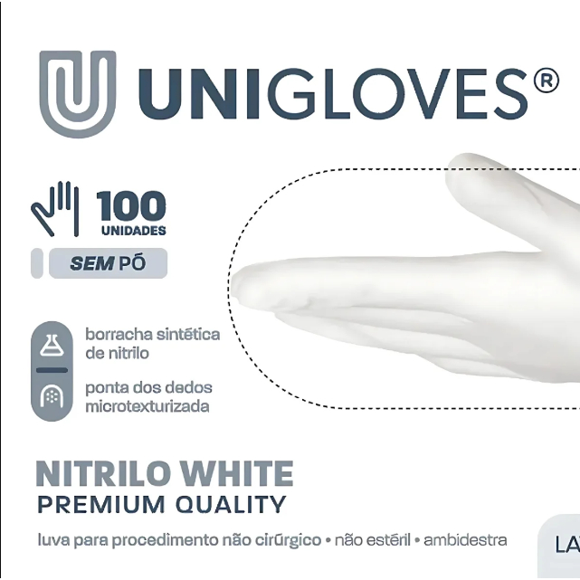 Luva De Procedimento Nitrilo White Premium Com 100 Unidades Unigloves