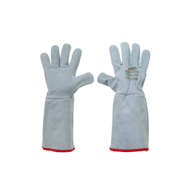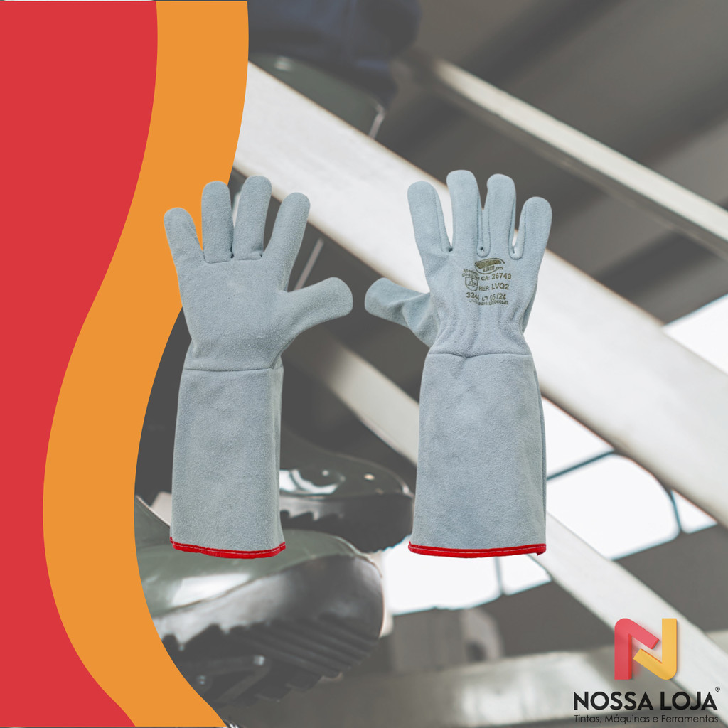 Proteção das mãos do usuário contra agentes abrasivos, escoriantes, cortantes e perfurantes. Luva de segurança confeccionada em raspa, com reforço palmar interno, com elástico embutido no dorso, costurada com linha de nylon, punho 15 e 20 cm. CA: 26749 Proteção das mãos 01 Par Luva De Raspa 20Cm Luveq