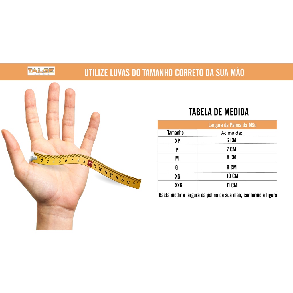 ATENÇÃO ! Nosso objetivo é te proporcionar o melhor preço! Por isso, podemos te enviar luvas da marca: TALGE, DESCARPACK ou MEDIX Descrição: Luvas de segurança para proteção das mãos confeccionadas em resina de PVC (vinil), com pó, punho com virola, sem costuras, macias, flexíveis, ambidestra, não estéril, hipoalergênica, descartável e de uso único. Especificações: CA: 27.802 Tamanhos: P (7), M (8) e G (9) Comprimento: 240mm Espessura: Palma 0,05mm Cartucho (cartolina/display): 50 pares Caixa master (papelão): 500 pares Uso: Descartável Formato: Ambidestro Acabamento interno: Com pó Punho: Virola Armazenagem: Manter em local limpo, seco, fresco, protegido da luz, da umidade e calor excessivo. Validade: 05 anos após a data de fabricação. Composição: Vinil PVC Poli(cloreto de vinila 100% virgem) com pó (amido de milho) Vantagens e Benefícios: 100% vinil, livre de látex Hipoalergênica Agilidade de movimentos Sensibilidade tátil Descartáveis Ambidestras Proteção do usuário e do produto Excelente performance em gastronomia e para produtos de estética. Utilização para serviços gerais leves em contato com detergentes e sabões. Aplicações e Indicações: Indicada para manuseio de alimentos, trabalhos leves, área de estética, limpeza e manutenção. Verificar o tamanho correto para suas mãos. Calçar a luva cuidadosamente. Recomenda-se retirar anéis ou outros acessórios que possam perfurar a luva. * Não recomendável para uso médico hospitalar e odontológico.